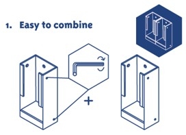 - 3 Metallhalterungen in weißer Pulverbeschichtung: kratzfest, stabil, abwaschbar